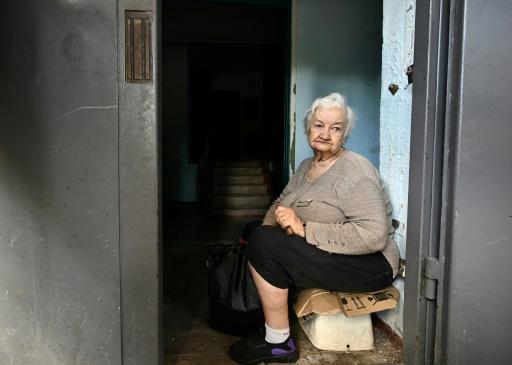 Cette femme de 75 ans est la seule habitante qui soit restée dans son immeuble de neuf étages à Saltivka, un quartier de Kharkiv, dans l'est de l'Ukraine, bombardé sans relâche depuis le début de l'invasion russe en février.