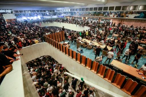 Dans le Parlement, les manifestants entonnent des chants religieux à l'occasion du mois lunaire de Mouharam, qui débutera dimanche en Irak et durant lequel les chiites célèbreront Achoura, commémoration du martyre de l'imam Hussein, gendre du prophète Mahomet et fils de l'imam Ali.