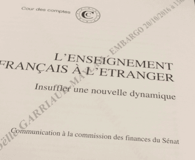 Avec près de 500 établissements dans 136 pays, l'enseignement français à l'étranger est atout unique pour notre langue et notre diplomatie. « En scolarisant ensemble des Français et des élèves d'autres nationalités, il renforce les liens entre la France et les pays d'implantation des établissements », dit le rapport de la Cour des Comptes commandé par le sénateur Les Républicains Eric Doligé. Son excellence est largement reconnue, pourtant le réseau subit la concurrence « intense » des établissements privés anglophones. Pour être pérenne, une « nouvelle dynamique » est nécessaire selon la Cour : « Il serait particulièrement dommageable qu'un tel actif vienne à dépérir par un étiolement financier qui, à long terme, pourrait conduire à une attrition irréversible ».