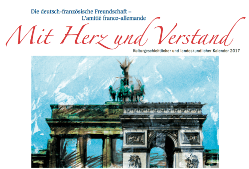 Mais ce n'est pas tout ! La dernière contribution de Pierre Sommet à l'amitié franco-allemande est un calendrier au format 60x43 cm, principalement rédigé en allemand, et richement illustré. Le titre prometteur "Die deutsch-französische Freundschaft mit Herz und Verstand" (L'amitié franco-allemande avec c?ur et compréhension), invite à un voyage culturel et interculturel. Douze pages sont ainsi consacrées à la France et à l'amitié franco-allemande avec le carnaval de Nice, de Dunkerque, la chandeleur, la Journée franco-allemande, la francophonie, les élections, le poisson d'avril, le Tour de France, le beaujolais nouveau, les marchés de Noël? et même la Foire du Livre en 2017 à Francfort !