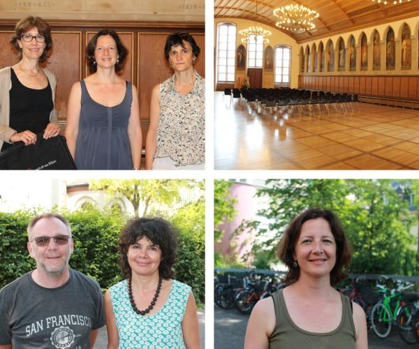 En haut à gauche : Florence Néault, Valérie Weishaupt et Catherine Bessoule ; en haut à droite : la Kaisersaal ; en bas à gauche : Patricia Boursier et Fabrice Beluche ; en bas à droite : Valérie Weishaupt