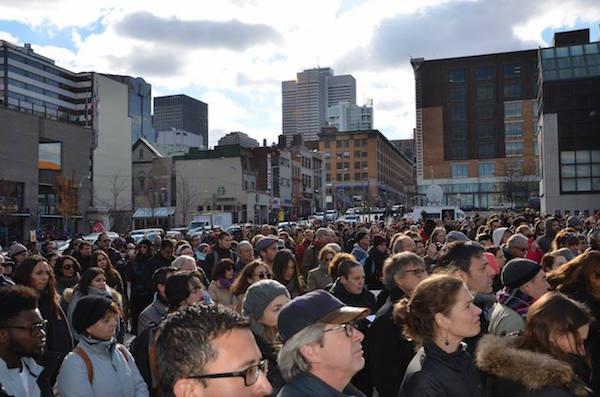 Hier, 16 novembre 2015, avait lieu un rassemblement Place des Arts, initié  par Marc Blondeau, président-directeur général de la Place des Art. Des membres de la communauté artistique et les nombreux participants ont pu par leur présence afficher leur soutien à la France suite aux attaques qui ont frappé Paris vendredi dernier. Ces actes de barbaries ont touché des lieux de loisirs, de détente et de culture de la ville lumière.