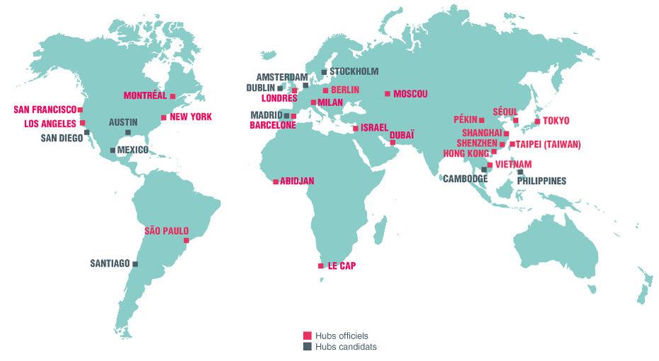 Le dernier objectif est de donner une visibilité à ces entreprises sur le marché international. Aujourd'hui, la communauté labellisée French Tech est présente dans 22 hubs au niveau mondial : New York, Shanghai, Londres, Milan et bien d'autres.