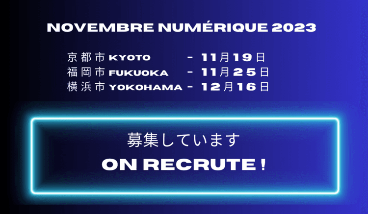 Le studio d'XRVision Itinéranteet l'Institut français du Japonparticipent à Novembre Numérique en présentant un événement d'exposition d'oeuvres de réalité virtuelle à Kyoto, Fukuoka et de Yokohama. Ils recherchent...