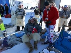 je suis arrivé, non pas par le meilleur style du ski Nordique, mais par le mental et le physique; Je sais je suis loin d'être un Champion, mais je l'ai fait !!!!!! J'ai doublement souffert pour au bout de trois jours franchir la ligne d'arrivée, Pour cet enfant Malade d'un Cancer et Mercredi je lui ramène ma peluche que m'ont confié les enfants inuits de Sisimiut."