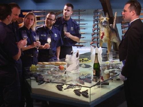 Le QG de la police cantonale ouvre ses portes aux visiteurs pour une séance de cinéma originale. Le film réalisé par Marco Schmitt met en scène plusieurs policiers enfermés de manière inexplicable dans le Musée du crime de Zurich. Un huit clos surréaliste en hommage au cinéaste Luis Bunuel.