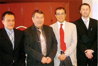 De gauche à droite : Hicham Benmansour, directeur général Comanav Voyages, Philippe Sala, Toufiq Ibrahimi, président-directeur général de Comanav S.A. et Fabien Sala (photo LPJ Casablanca).