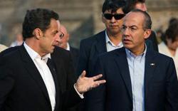 Nicolas Sarkozy avec le président Mexicain Felipe Calderon lors de sa visite officielle au Mexique en mars 2009 (photo AFP)