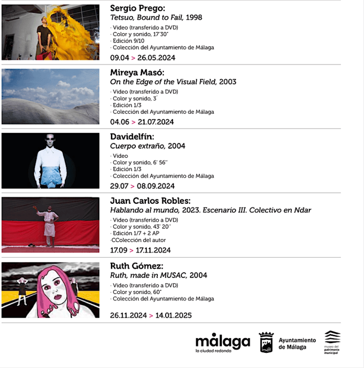 Le MUPAM a organisé un programme de projections, qui aborde diverses questions qui interpellent le spectateur, et qui se déroulera jusqu'au 14 janvier 2025, une initiative qui vise à rapprocher l'art audiovisuel des visiteurs du MUPAM, le Musée du Patrimoine Municipal de Malaga.