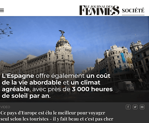 Comme l’indique le magazine « Journal des Femmes », le pays a plusieurs avantages dont le le coût de la vie , très abordable et le climat puisque l'Espagne bénéficie d'environ 3 000 heures de soleil par an !