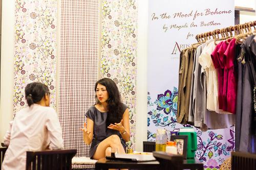Élégante globe-trotteuse, Magali An Berthon incarne à merveille la collection capsule (série limitée dans le jargon de la mode) intitulée "In the mood for Bohême", qu'elle a entièrement dessinée pour Artisans d'Angkor. Une grande première pour cette designer, qui est passée par de grandes maisons de couture comme Kenzo, mais n'avait jamais eu l'occasion de monter une collection à son nom.