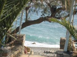 Babis vous apporte cela avec le sourire patiné de celui qui voit passer les jours au gré des vagues. Ici les regards se croisent et se sourient. On a la notion que, soudain, on a réussi l'impossible : arrêter le temps, contempler sans se presser les vagues d'une mer sauvage et bleu profond, loin de tout. On y resterait bien un peu plus, chez Babis, mais déjà il faut reprendre la piste, soulever un peu de poussière pour retrouver la civilisation. Dommage.