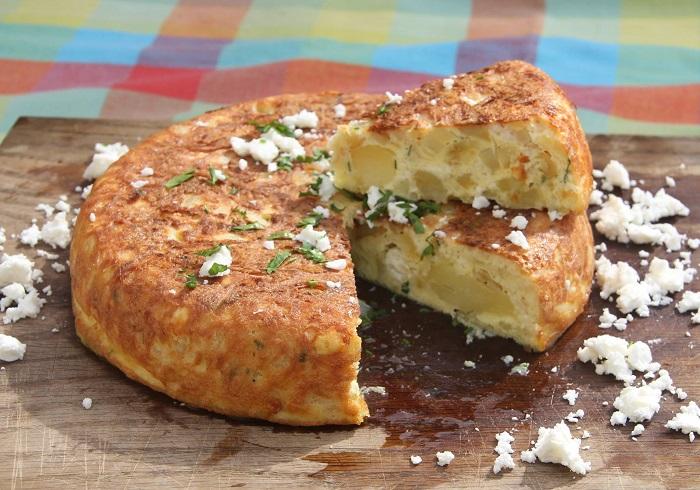 L'omelette est bien sûr à base d'oeufs, facile à réaliser et l'on peut mélanger plusieurs ingrédients. Sa version classique en Grèce est avec des pommes de terre. Dans ma recette j'ai rajouté de la feta et du persil.