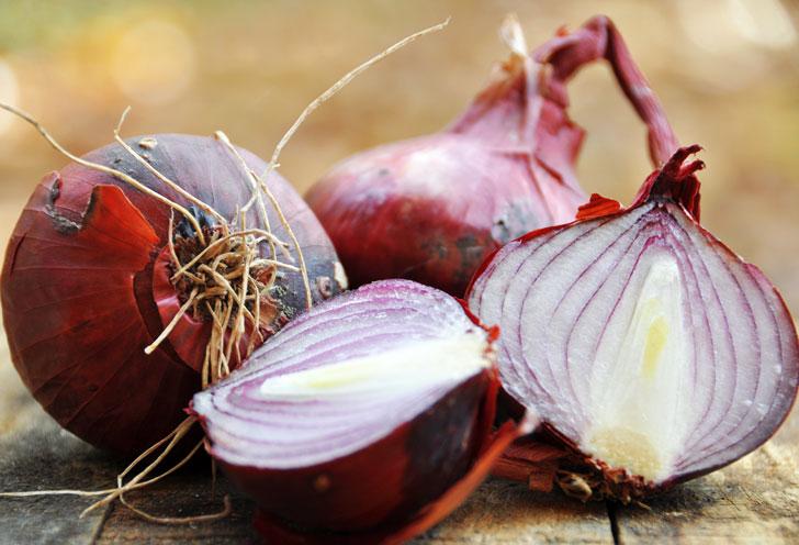 ?Épluchez l'oignon rouge et couper de fines rondelles.?