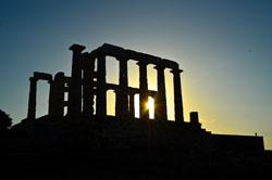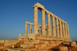 Lorsque vous apercevez au loin, les ruines des colonnes du temple -- classé parmi les parcs nationaux de Grèce -- il sera environ 16h. Le bus vous déposera au pied du mont où vous pourrez vous restaurer dans un café avec vue panoramique sur le paysage marin et antique. Puis, vous emprunterez un chemin après avoir passé le portail où vous devrez débourser 4 euros pour vous rendre sur le sanctuaire de Poséidon. Pour les étudiants avec un justificatif, la visite est entièrement gratuite. Il s'agit d'avantage d'une promenade en bord de mer qu'une visite archéologique très poussée. En effet, en moins d'une heure vous aurez fait le tour du temple. Par contre vous passerez beaucoup plus de temps à admirer le spectacle qu'offre la Mer Egée, en vous asseyant au milieu des rochers, avec l'horizon droit devant. En descendant sur les flans du mont, vous découvrirez les ruines d'un sanctuaire dédié à Athéna. Dans la mythologie grecque, les dieux ont voulu élire un protecteur pour la ville d'Athènes. Tous les hommes votèrent pour Poséidon, alors que la totalité des femmes, majoritaires, votèrent pour Athéna. C'est donc elle qui devint la protectrice d'Athènes. Furieux de sa défaite, Poséidon commença à inonder toute la campagne environnante, et pour le calmer Zeus lui dédia ce temple à 79 mètres du niveau de la mer.