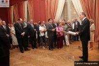 Emotion enfin, au moment de vous quitter. De remercier mes collègues ambassadeurs de leur coopération et de leur appui, de remercier nos partenaires grecs qui se sont montrés envers moi ouverts et accueillants. De dire au revoir aux amis, nombreux, dont je garde précieusement le souvenir souriant.