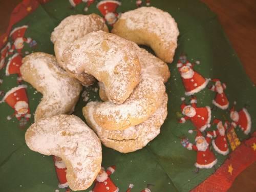 En Grèce, il est coutume de déguster deux types de biscuits pour Noël : l'un à base de noix, sirupeux à souhait : les melomakarona. Les autres, plus friables et recouverts de sucre glace se nomment kourabiedes. A cette époque de l'année, les devantures des boulangeries regorgent de ces biscuits achetés allègrement par les familles grecques. Mais les puristes préfèrent les cuisiner eux-mêmes, et chaque famille possède sa recette qu'elle garde jalousement.