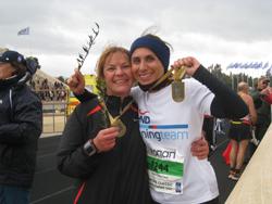 Je ne cours régulièrement que depuis un an, en moyenne 2 à 3 fois par semaine. En 2011, à part le semi marathon de Paris-Versailles et les 10 km de Thessalonique, j'ai couru, en octobre, le tour de Spetses (26 km.) Une très belle compétition, organisée pour la première fois , que je recommande d'ailleurs (http://spetsesmarathon.com). J'y ai rencontré des Grecs qui préparaient ensemble le Marathon d'Athènes, qui m'ont convaincue de le courir avec eux. J'ai donc eu un mois pour me préparer, avec l'aide de cette équipe. Dans un marathon, la motivation et le mental jouent un rôle aussi important que la condition physique. J'ai augmenté mes entraînements en courant une heure par jour, 5 fois par semaine, et effectué trois longues sorties de 16, 25 et 32 km.