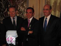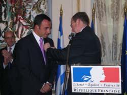 M. Renaud Donnedieu de Vabres, Ministre français de la Culture et de la Communication, a remis les insignes de Chevalier des Arts et Lettres à M. Nikos Aliagas, journaliste, le lundi 26 mars,dans les salons de la Résidence de France. Reportage photo