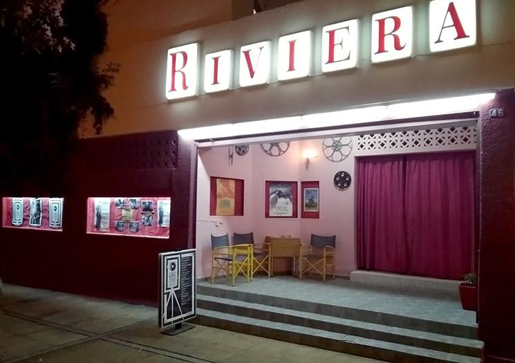 Non loin du Vox, et tenu par la même famille que ce dernier, le Riviera a été bâti après un incendie, en 1969, sur proposition de Theodoros Riga. Aujourd'hui, l'événement semble bien lointain, dans cette oasis de verdure à la façade rouge délavé, qui offre 300 places à ses visiteurs.