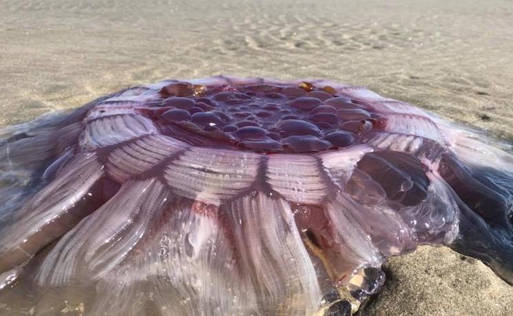 Au milieu d'une foule de méduses échouées sur la plage, une étrange créature a attiré leur regard. Ils avaient affaire à une méduse à crinière de lion, l'une des plus grandes espèces du monde. Son diamètre peut dépasser 1 mètre et selon la NIW (National Institute of Water and Atmospheric research), sa présence sur les plages de Nouvelle-Zélande est « assez normale » durant les mois chauds. Avoir affaire à de telles espèces en septembre est cependant plus rare.