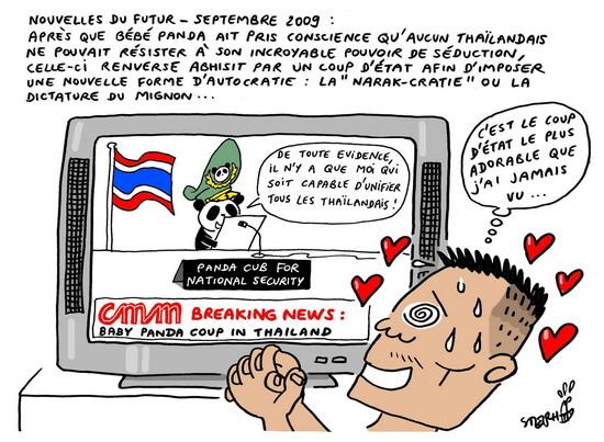 Le cartooniste Stephff nous fait partager son regard sur l'actualité thaïlandaise marquée par la naissance très médiatisée d'un bébé panda au zoo de Chiang Mai