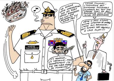 Le cartooniste Stephff nous fait partager son regard sur l'actualité thaïlandaise marquée ces jours-ci par l'assignation en justice d'un duo de journalistes australo-thaïlandais accusé par la marine de l'avoir incriminée dans un article citant une enquête de l'agence Reuters faisant état d'un trafic humain sur la minorité apatride des Rohingyas