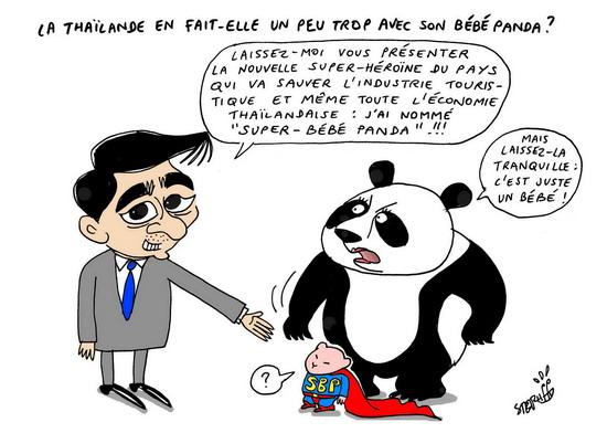 Le cartooniste Stephff nous fait partager son regard sur l'actualité thaïlandaise marquée ces jours-ci par la naissance très médiatisée d'un bébé panda dans le zoo de Chiang Mai après de nombreuses tentatives plus ou moins farfelues pour faire s'accoupler ses parents