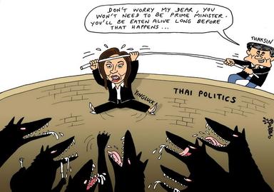Depuis son exil à Dubaï, Thaksin demeure la figure centrale de la politique thaïlandaise, une icône populiste, sans doute l'homme à la fois le plus détesté et le plus vénéré de l'histoire du pays. Autour de lui se cristallise le fossé entre les élites de Bangkok proches du palais royal, et les masses rurales et populaires, dont une partie le considère comme l'unique homme politique à s'être jamais battu pour les pauvres. La désignation de sa soeur à la tête de l'opposition semble judicieuse : la photogénique femme d'affaires, novice en politique et première Thaïlandaise candidate au poste de Premier ministre, caracole en tête des intentions de vote.