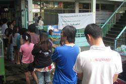Une file d'électeurs dans une école du quartier de Narathiwat à Bangkok transformée en bureau de vote pour le scrutin d'hier. Le taux de participation avoisinerait les 86%, selon la Commission électorale, un chiffre record (photo LPJ Bangkok.com)