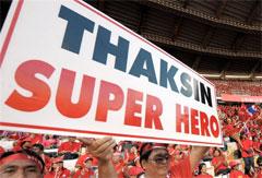 Enfin, après avoir tiré les larmes de l'assistance en retraçant ses deux dernières années de mauvaise fortune, il a déclaré qu'il ne pourrait rentrer au pays que par la clémence du roi Bhumibol Adulyadej ou par le pouvoir du peuple. Une façon de renvoyer au souverain la responsabilité de la prolongation éventuelle de son exil tout en défiant les militaires de toute tentative de coup d'état. Les avocats de Thaksin ont néanmoins fait savoir qu'aucune demande d'amnistie royale par les voix officielles n'était en projet. En tout cas, Sa Majesté est prévenue. Les âmes sensibles à l'étiquette apprécieront. Jouant de l'affection que lui portent ses partisans, Thaksin a lancé à la foule électrisée : "Puis-je vous demander, mes frères et s?urs, si vous souhaitez me voir rester à l'étranger pour une si longue période ?"? la période d'application de sa condamnation à de deux ans de prison est limitée à dix ans.