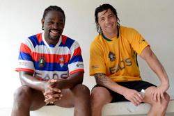 Serge Betsen, flanker, ex-international de rugby qui a passé quasiment toute sa carrière au Biarritz Olympique, et Bryan Kelleher, ancien demi de mêlée des "All Blacks", qui a notamment brillé sous les couleurs du Stade Toulousain (photo Pascal Della Zuana)