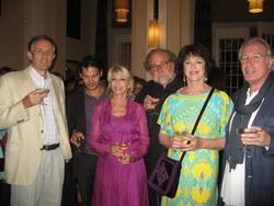 L'équipe de la série et des familles du lycée français avaient été conviées à la Résidence de France lundi 15 juin. De g. à dr.: Laurent Bili, ambassadeur de France, les acteurs Alexandre Thibault, Béatrice Agenin, le réalisateur Joël Santoni, Anny Duperey et Bernard Lecoq (Photo Emmanuelle MICHEL)