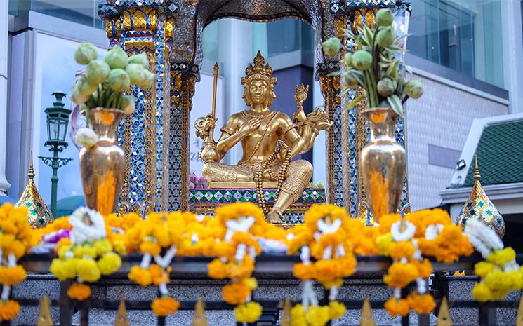 A Bangkok, une des plus belles illustrations de religiosité locale est la célèbre chapelle d'Erawan. Situé en plein quartier d'affaires, à l'angle du Grand Hyatt Erawan Hotel, cet autel très particulier a une histoire vraiment singulière