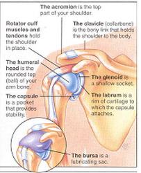 L'épaule est facilement blessée car la tête de l'humérus est plus large que la cavité de l'omoplate, dans laquelle elle s'insère (Croquis BNH)