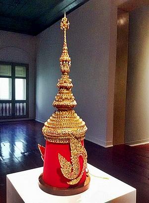 Dans des pièces voisines, on y trouve aussi l’illustration de la cérémonie, publiée par le journal français Le Monde en 1861, ainsi que les différents composants de la couronne, tel que le vernis laqué, provenant de la sève d’arbres de Lanna, ancienne région au Nord de la Thaïlande. La visite est animée d’une courte vidéo, sous-titrée en anglais, qui explique les techniques de fabrication du joyau et permet de mieux appréhender les savoir-faire locaux.