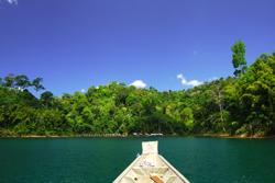 La montée du niveau des eaux à l'intérieur du réservoir n'a laissé affleurer que les pitons calcaires si caractéristiques de la province de Phang Nga. "Une promenade sur le lac constitue toujours une expérience spectaculaire et un peu mystérieuse, qui fait dire à beaucoup de touristes qu'il s'agit là d'une sorte de baie d'Along lacustre", indique Eric Limbos, un Belge francophone de 29 ans installé dans la région depuis deux ans et qui est propriétaire du Khao Sok Paradise Resort, dont les chambres sont perchées au sommet des arbres.