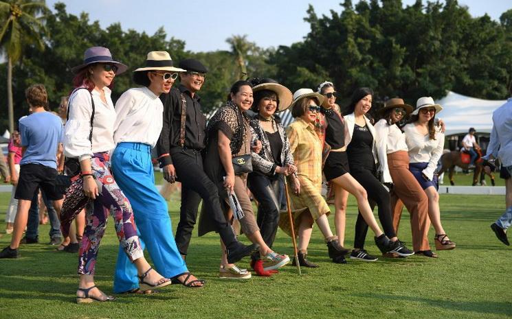 Tandis qu'elle parle, des femmes thaïlandaises "HiSo" (pour "haute société") en talons aiguilles et coiffées de chapeaux extravagants s’aventurent sur le doux gazon. Des rires se font entendre depuis la tente Veuve Clicquot où des hommes en pantalons en crépon de coton roses vont camper toute la journée.