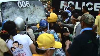 Les policiers avaient livré de rudes batailles contre des manifestants déterminés -certains munis de bombes artisanales- et avaient lancé de nombreuses grenades lacrymogène. Les manifestants étaient des partisans des Chemises jaunes, conservateurs ultra-monarchistes cherchant à chasser du pouvoir le parti de l'ancien Premier ministre Thaksin Shinawatra, soutenu par les Chemises rouges.