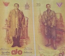 Plus ancien chef d'Etat en exercice, toutes nations confondues, sa majesté Bhumibol Adulyadej fêtera ses 70 ans de règne sur la Thaïlande le 9 juin 2016. Pour célébrer cet événement, la Banque de Thaïlande a décidé d'émettre un nouveau billet de 70 bahts, destiné à la collection.