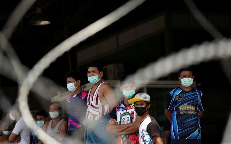 Mercredi, des militants des droits des travailleurs ont dénoncé le fait que le gouvernement entassait des centaines de travailleurs migrants dans des bâtiments sans séparer ceux ayant contracté le virus des autres, rapporte le journal Khaosod English.