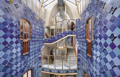 Mais ne vous arrêtez pas à la façade, ce chef-d'œuvre moderniste offre de nombreux espaces à explorer sur cinq étages : le “toit du guerrier”, avec ses cheminées futuristes et sa vue panoramique sur Barcelone ; le grenier, surnommé "la baleine" pour ses arcs de briques courbées ; l’appartement des voisins, et les cours intérieures - la Casa Milà est le seul édifice de Gaudí à comporter deux cours intérieures - baptisées "cour des fleurs" et "cour des papillons".