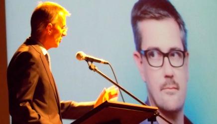 Introduit par Yannick Rascouët, le directeur de l'Institut, Edouard Beslay, Consul général de Barcelone, a rendu hommage aux victimes et remercié "ceux qui se sont joints au deuil de la France". Frédéric Boisseau, Franck Brinsolaro, Jean Cabut, Elsa Cayat, Stéphane Charbonnier, Philippe Honoré, Bernard Maris, Ahmed Merabet, Mustapha Ourrad, Michel Renaud, Bernard Verlhac, Georges Wolinski, Clarissa Jean-Philippe, Philippe Braham, Yohan Cohen, Yoav Hattab, François-Michel Saada, sur une douce musique où s'élève une flûte traversière, le Consul a rappelé les noms des victimes alors que leurs visages défilaient sur l'écran géant. Après avoir salué les institutions, les responsables religieux, les mairies et les associations de Catalogne, Edouaurd Beslay a donné un discours rappelant les valeurs françaises, le soutien de l'Espagne. Il a précisé qu'il "ne faut pas se laisser effrayer par la barbarie".
