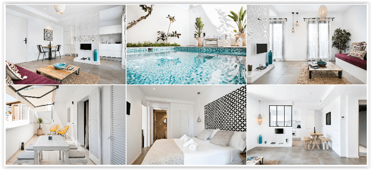 Chaque appartement est adapté à vos besoins. Couple, famille, affaires? chaque appartement vous offre différents avantages : vue sur la mer, piscine, terrasse privée? Ils sont entièrement équipés avec la télévision internationale, air conditionné, entrée digicode, caméras de sécurité dans les zones publiques, lave-linge, cuisine avec four / micro-ondes, réfrigérateur, cafetière Nespresso? Et tout ce dont vous avez besoin pour passer un séjour agréable. Tous nos meubles sont inspiré par nos voyages à Ibiza et au Maroc.