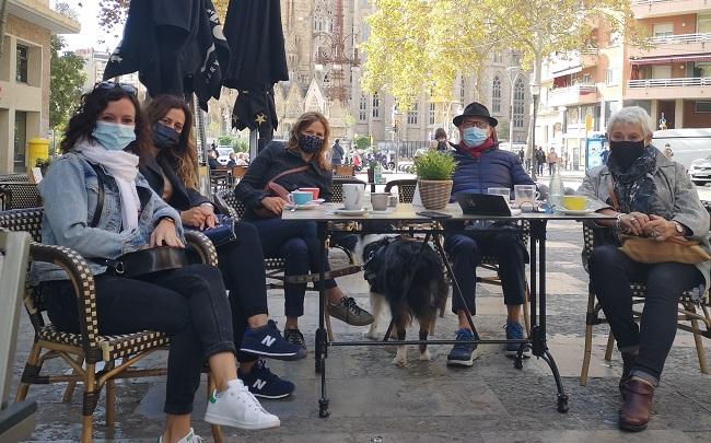 Pour la deuxième édition depuis la rentrée, les Français du secteur de la Sagrada Familia se sont retrouvés au pied de la célèbre basilique de Gaudi, profitant d'une terrasse de café peu avant la quinzaine de fermeture des bars et restaurants décidée par la Generalitat (du 16 au 31 octobre). Une occasion supplémentaire pour Monique Touzot-Diaz, qui anime le Café Accueil dans ce quartier de la Sagrada Familia, de souhaiter la bienvenue à de nouveaux adhérents de Barcelone Accueil, en compagnie de Léo Tascon, l'un des "piliers" de l'association (en charge notamment des randonnées adaptées à tous en Catalogne).