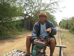 Nou Seng, un officier de police de la gare d'Odambang explique que la guerre civile a véritablement dévasté le chemin de fer. A la fin des combats, les trains ne pouvaient relier Phnom Penh à Battambang qu'une fois par jour et à une vitesse moyenne de 10 kilomètres par heure. Une performance peu glorieuse! Le policier se souvient "Les Khmers Rouges faisaient sauter des portions de rails presque tous les jours pour couper court aux transports" avant d'ajouter"Ils plaçaient de nombreuses mines à divers endroits du chemin fer entre Battambang et la province de Kampong Chhnang. Beaucoup de parties de la voie ferroviaire, ont été endommagées par les bombes". Nou Seng raconte qu'en dépit de ces nombreux problèmes, les trains continuaient à passer sur le chemin de fer jusqu'à l'an dernier. Ils sont désormais à l'arrêt. Par la suite, les trains de bambou ont joué un rôle important dans le transport de biens et de personnes. L'officier nuance"IIl n'y a pas que les locaux qui les utilisent. Une trentaine de touristes par jour viennent à la gare pour voyager en train de bambou".