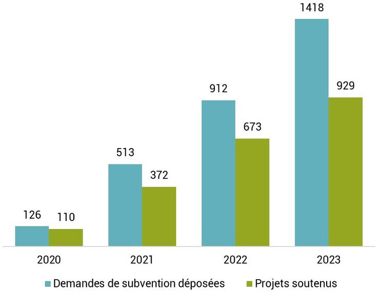 Depuis le lancement du Fonds citoyen, près de 3 000 demandes de subvention ont été déposées et plus de 2 000 projets ont été financés. Or, la demande ne cesse d’augmenter. Les gouvernements ont pris note de cet engagement et du besoin croissant en portant le budget annuel du Fonds citoyen de 2,4 millions à 5 millions d’euros en 2022.