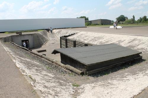Porte d'entrée menant aux barracks. L'audioguide diffuse de nombreux témoignages d'arrivants humiliés à cet endroit. Ce camp était réputé pour maltraiter notamment les homosexuels