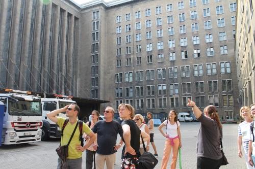 Le premier bâtiment à découvrir est ce lui de Luft Hansa, l'ancêtre de la compagnie aérienne actuelle. Selon la guide le « changement » d'écriture vient du fait que Lufthansa aurait souhaité prendre ses distances avec son passé...