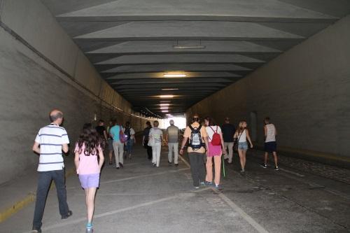 Enfin, la visite s'achève par le passage dans un tunnel ? Ce dernier permettait de relier l'aéroport au métro. Cela peut sembler logique aujourd'hui mais Tempelhof fût à l'époque le premier aéroport à être doté de cette possibilité. Un concept novateur très vite copié.